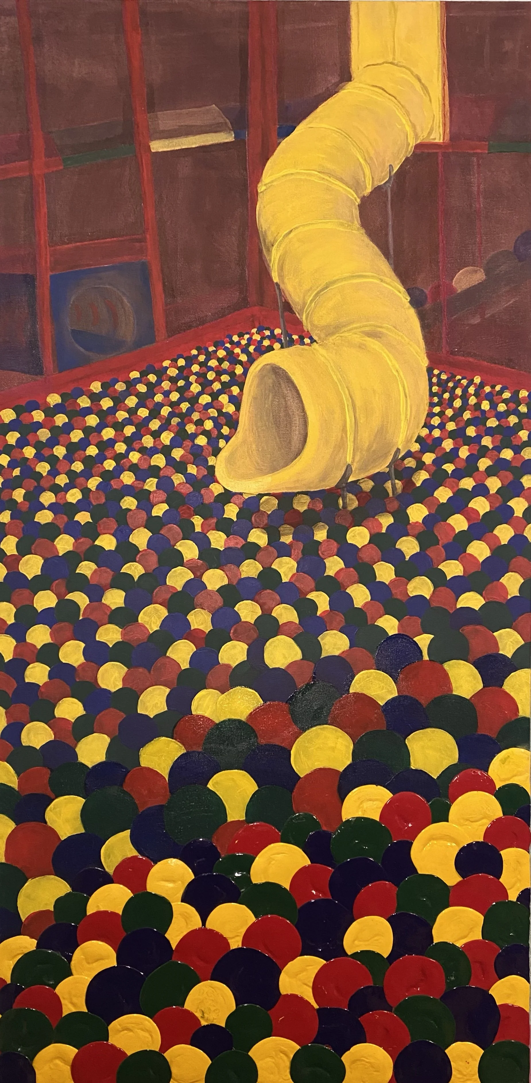 Acrylic paint, acrylic markers, colored tissue paper, chalk pastels, graphic paper, graphic plastic vinyl sheets bubble wrap, Smashbox liquid highlighter on canvas