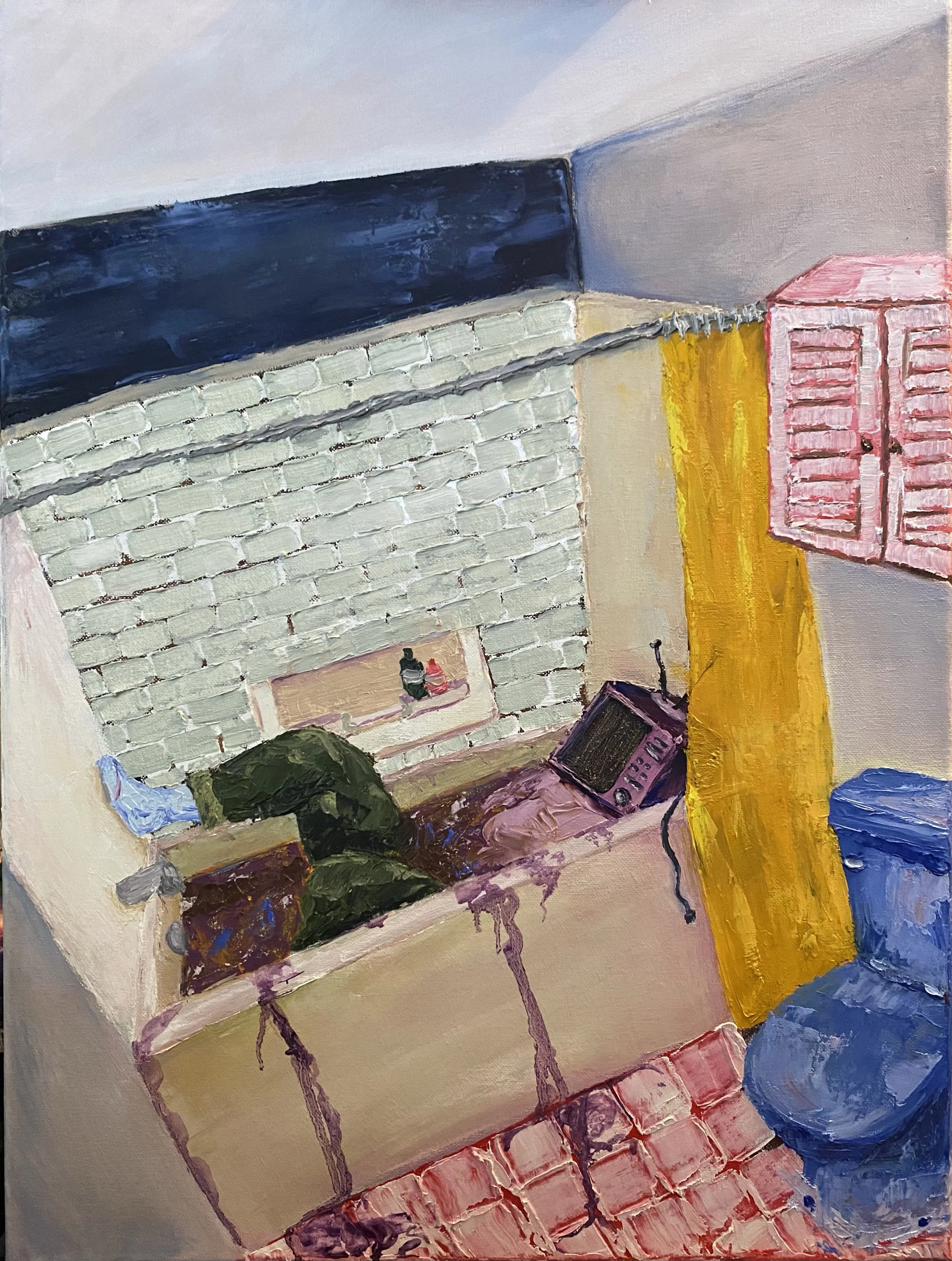 Oil paint, Acrylic paint, Fabric, Rope on canvas